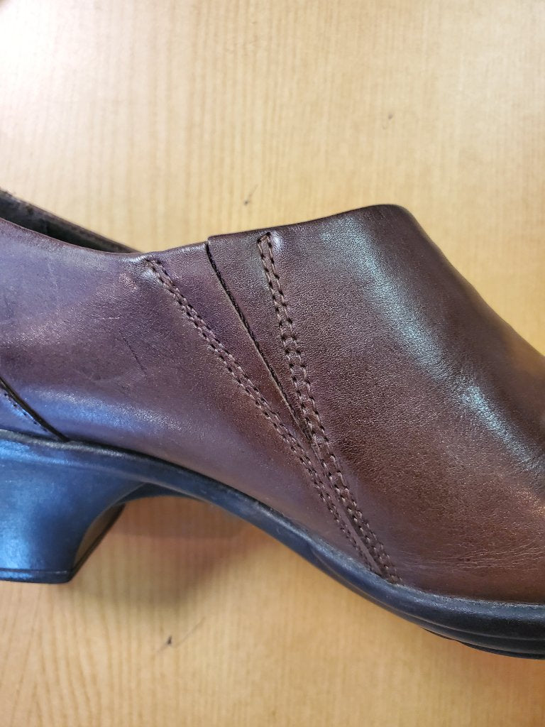 Description : All leather upper with a lovely pleated accent on vamp. Elastic wedge on shoe to add additional comfort. Heel is 2" & sole is Man-made