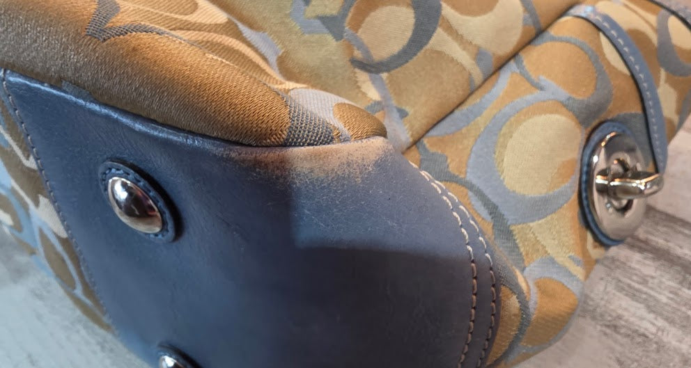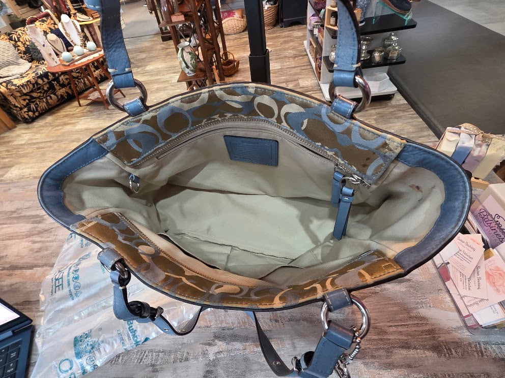 Description : Coach Purse F13762 Denim Blue Leather Tan