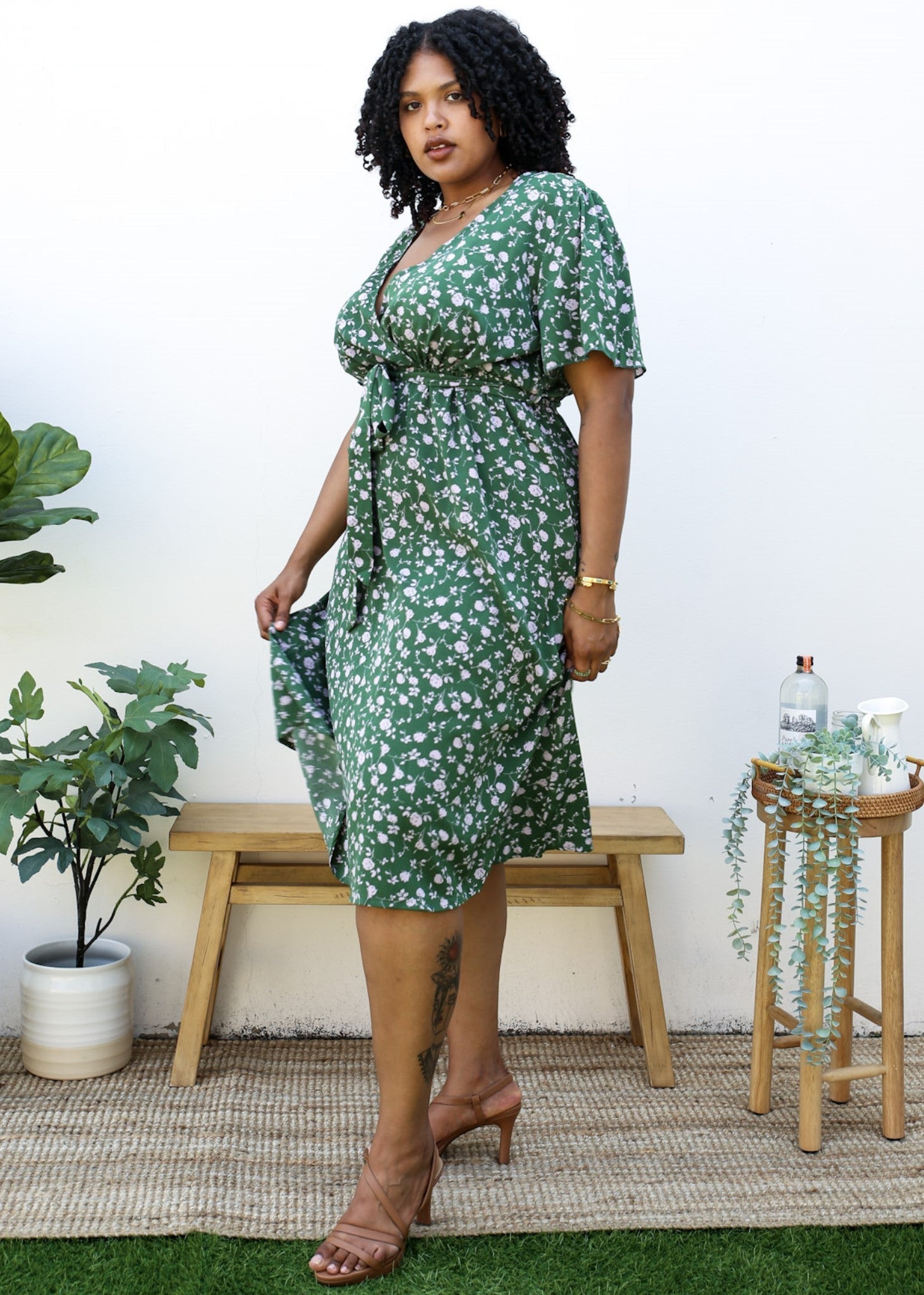 Elevate your style with the Anna-Kaci plus size maxi dress. Featuring a stunning pink floral print on a green background, this dress exudes elegance and charm. The V-neckline and short sleeves enhance the feminine appeal, while the tied belted waist creates a flattering silhouette. Whether you're attending a garden party or a summer wedding, this dress is a perfect choice. Pair it with strappy heels and delicate jewelry for a sophisticated look.