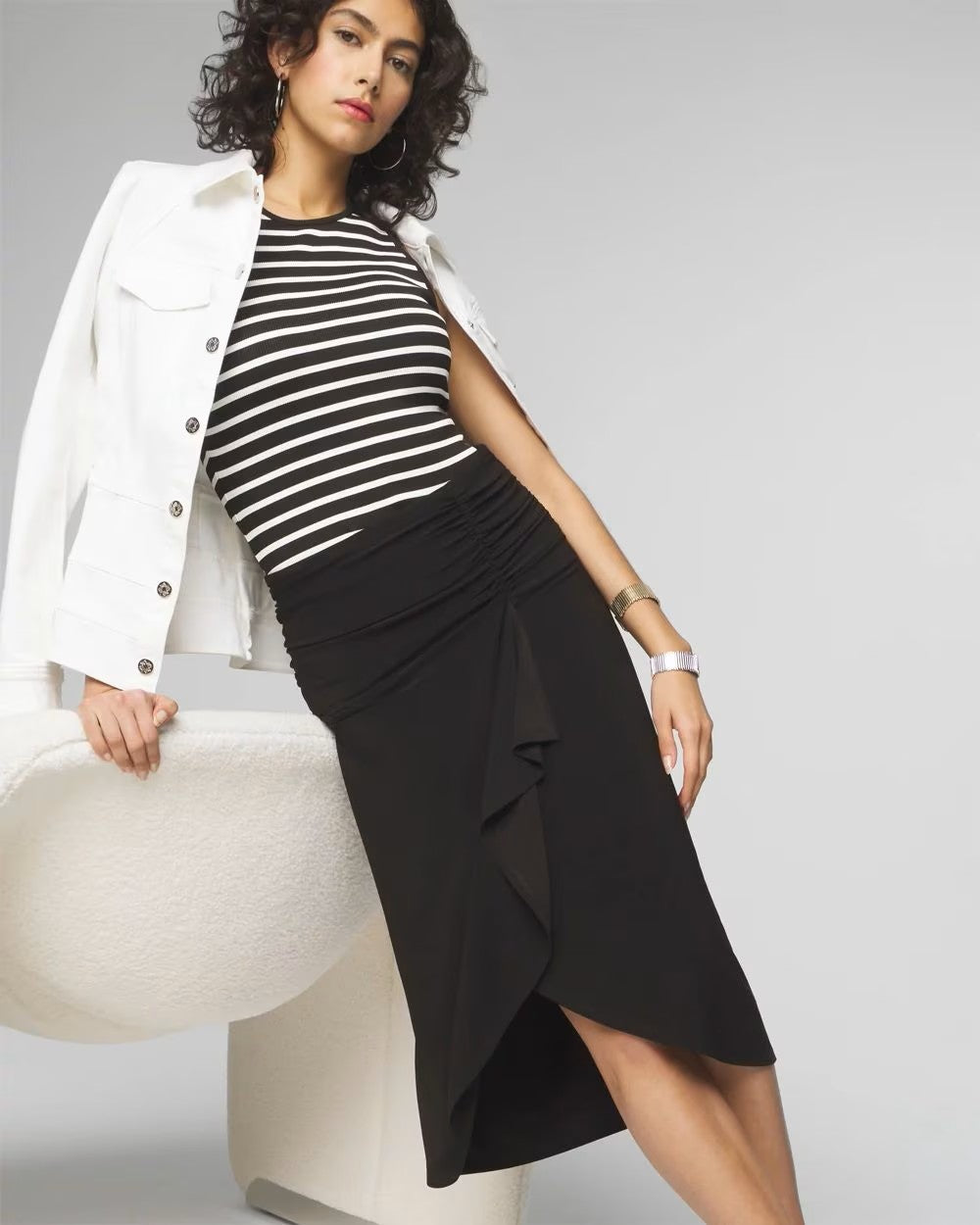 Description : WHBM Ruched MJ Spiral Skirt Sz Medium
